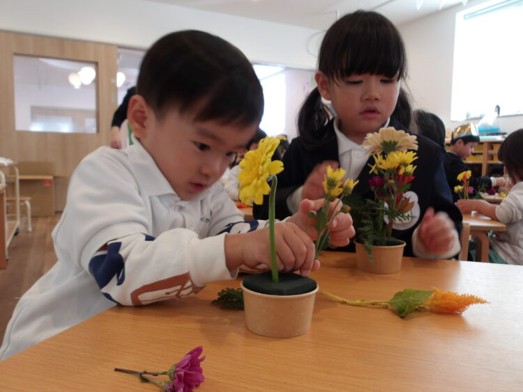全体の色のバランスも気にしながら考えて選ぶ姿もあり、本当のお花屋さんのようですね。
