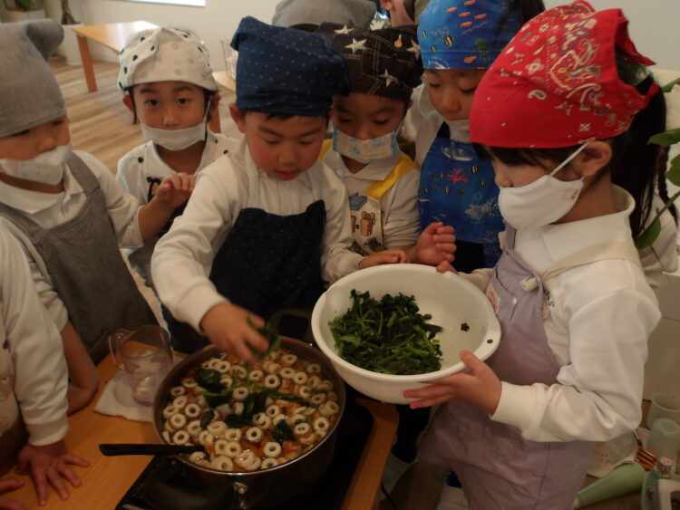 お出汁で野菜を煮ていると「いい匂い〜☺️」と呟く子どもたち。