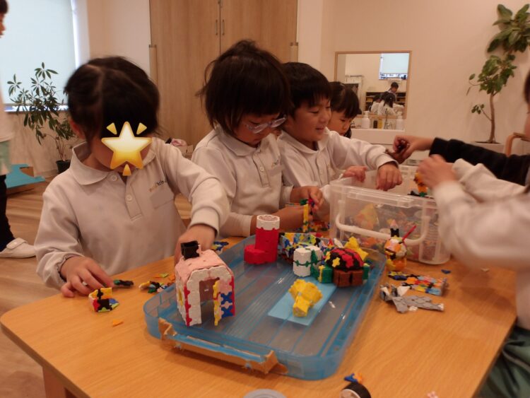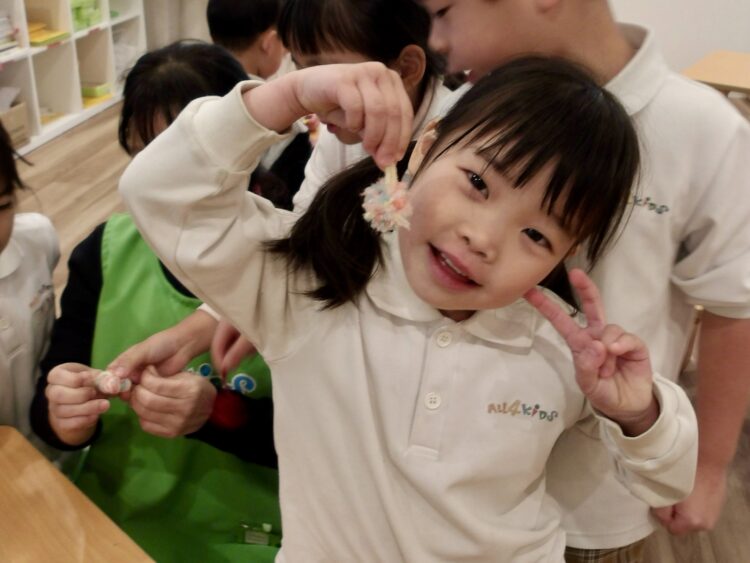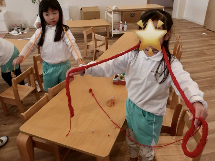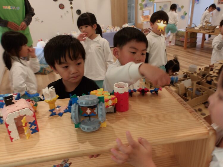 少し難しかったようですが、作り方がわかったお友だちが自然と先生と呼ばれるようになり、「◯◯先生これで合ってる?!」「ねえなんで私先生になってるの!?」と言葉を交わしながら作っていました😂