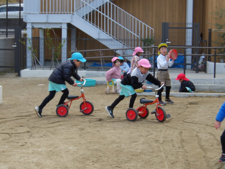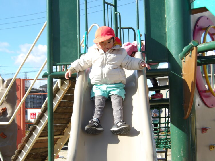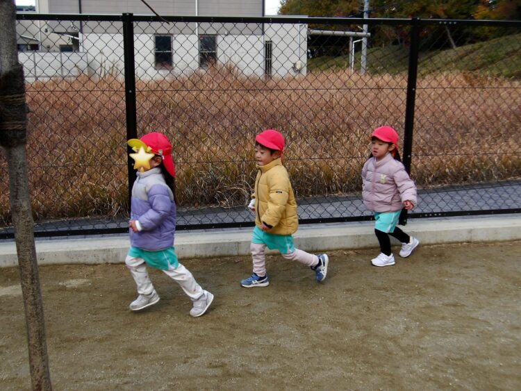 外はとっても冷たい風が吹いていましたが、へっちゃらな様子でお友だちと追いかけっこをしたりマラソンごっこをして元気いっぱいにすごしていましたよ。