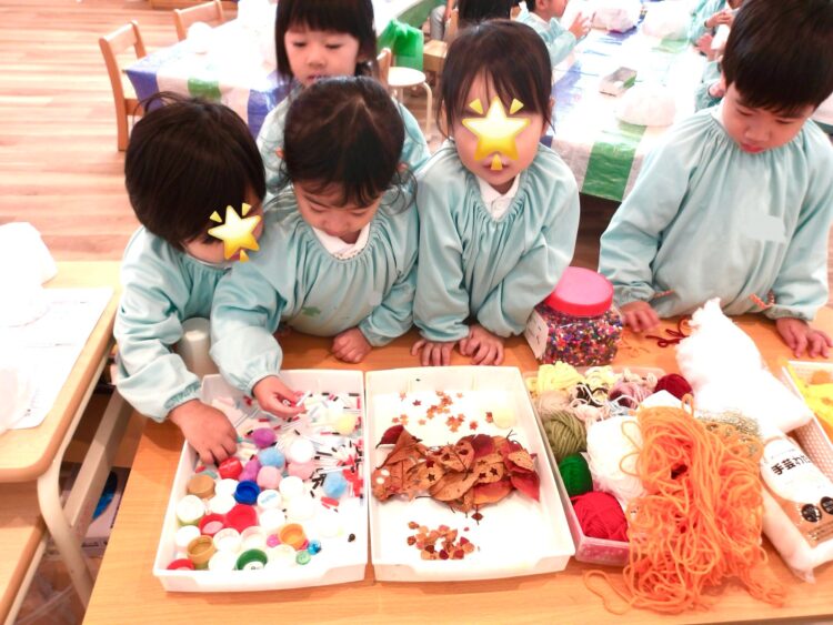 どんぐりを使い切る勢いで、みんなで《ねこどんぐり》や《おめめキラキラどんぐり》など、個性豊かなどんぐりちゃんを作っていました。