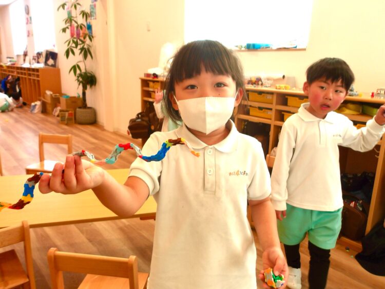 井形ブロックやレゴブロックでドールハウスを作ったりする姿も見られていて、構造あそびに磨きがかかっている子どもたちです✨