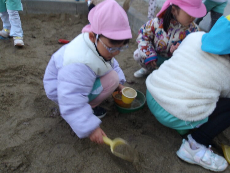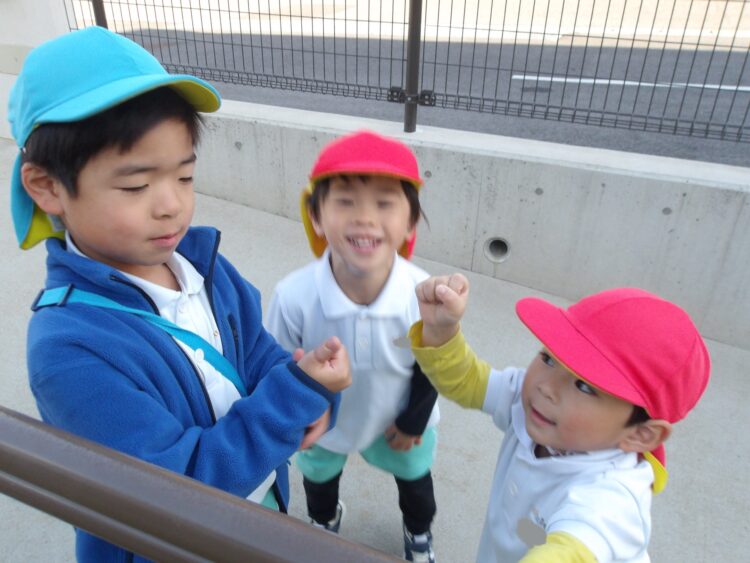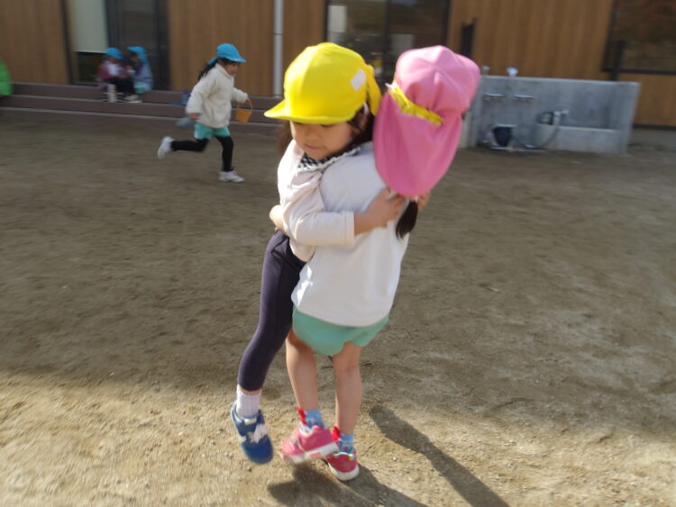 そら組ははじめ保育者と一緒にやっていたのですが、途中からたいよう組さんが「そら組さんのやりたい」と言いやってくれました。