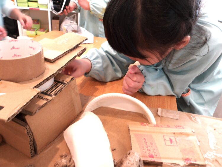 作りながらどんどんアイデアが湧き出てくる子どもたち。
