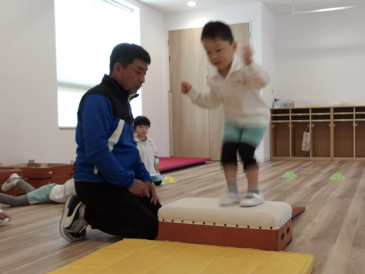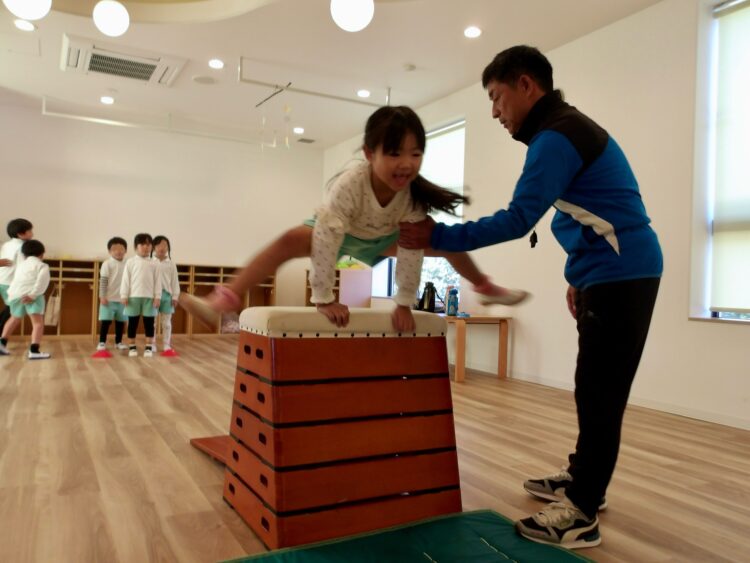 体操が終わると「初めて5段に座れた!」「先生に一回かっこいいって言われちゃった♪」と口々に嬉しそうに教えてくれましたよ。それぞれに達成感を味わえたようでした。