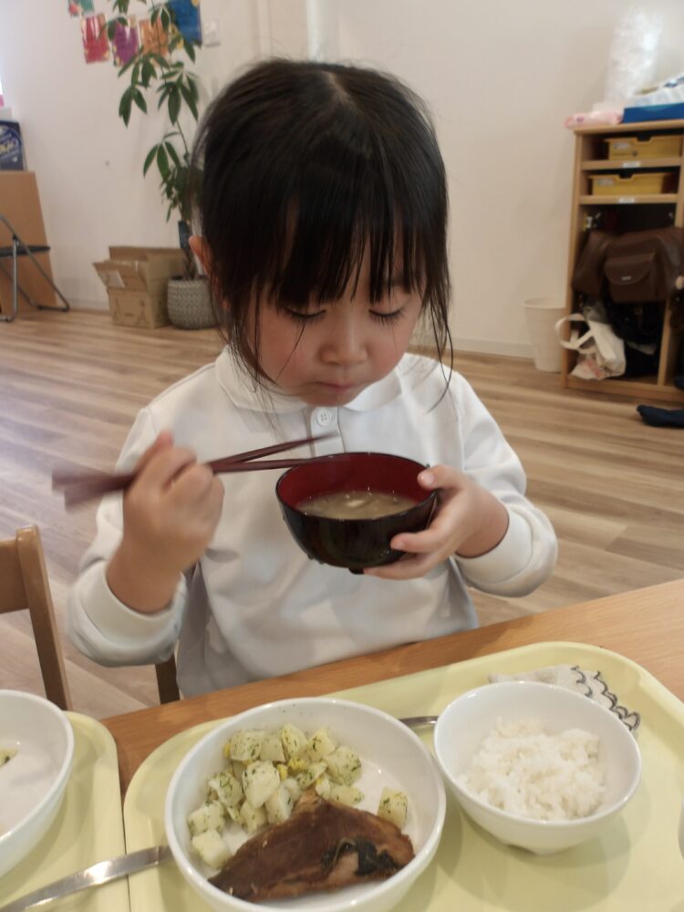 「甘くて美味しいー!」と白味噌やさつまいもの甘みを感じながら、味わう姿が見られました。