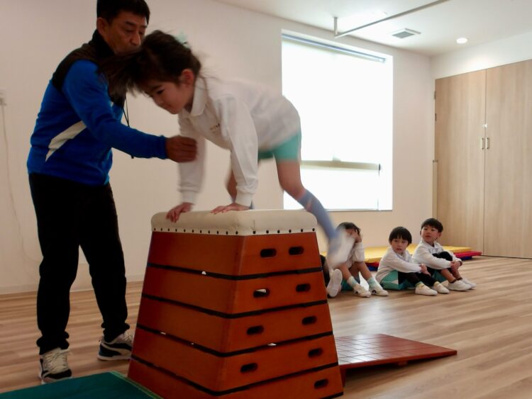 今日は体操教室で跳び箱に取り組みました。