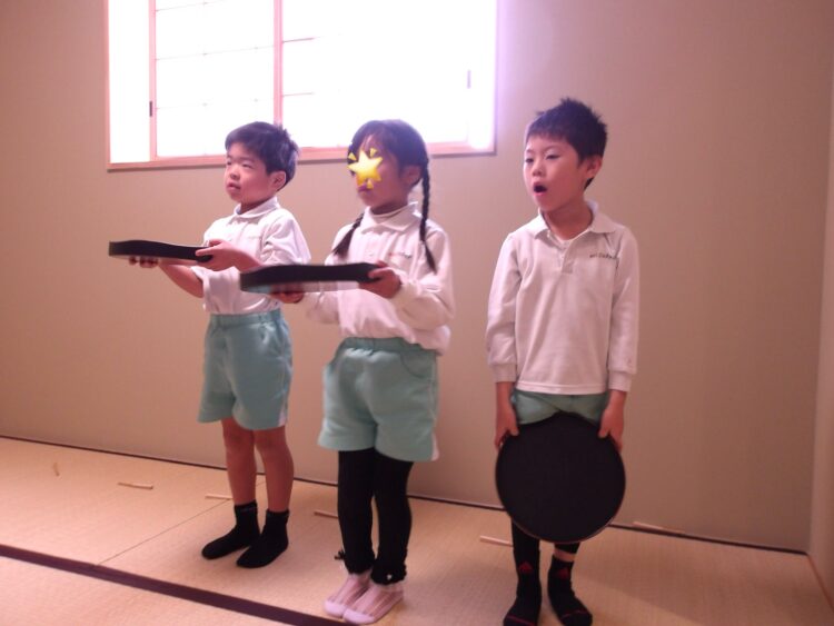 にじ組はハンカチ落としを楽しんでいました。