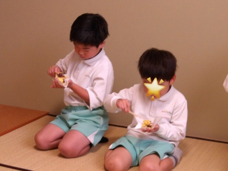 形だけでなく、ほんのり柚子の風味があるお菓子で、「なんか酸っぱい!」「12月もこれと同じのがいいなぁ〜🥺」と話しながら食べていました。
