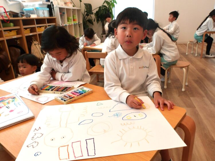 早くも描いた絵をおうちの人に見てもらえるのを楽しみにしている子どもたちです🎨