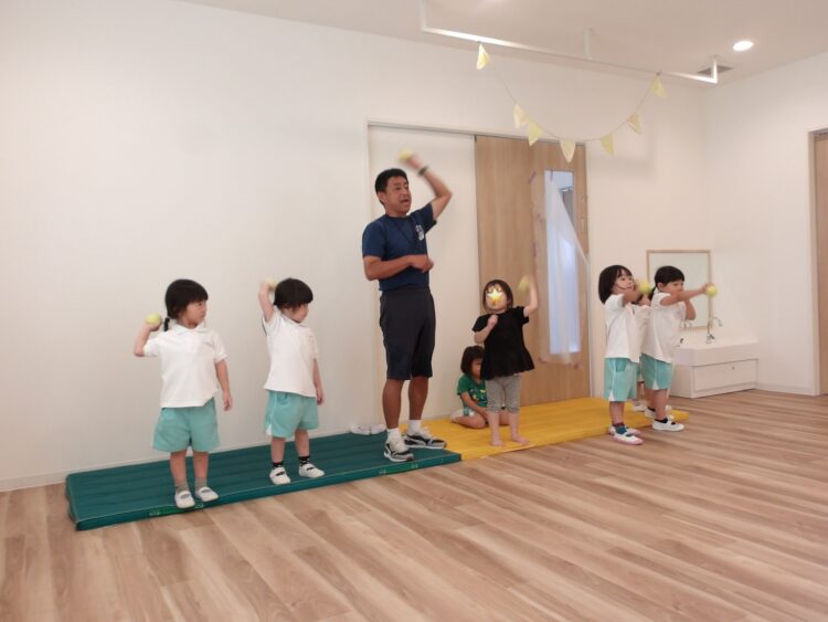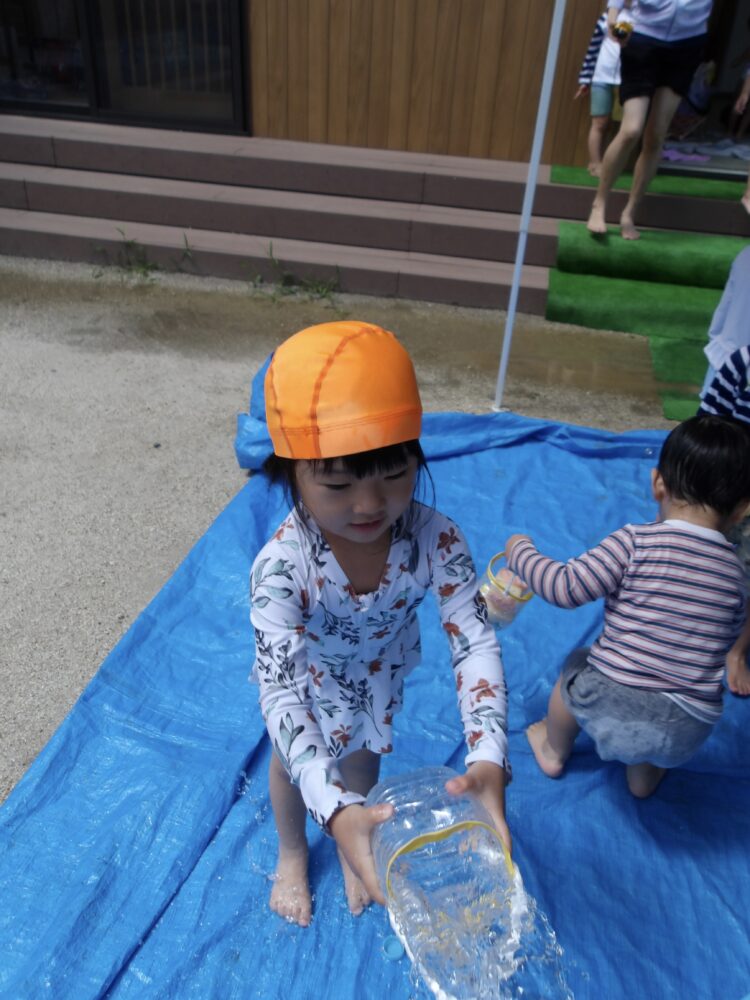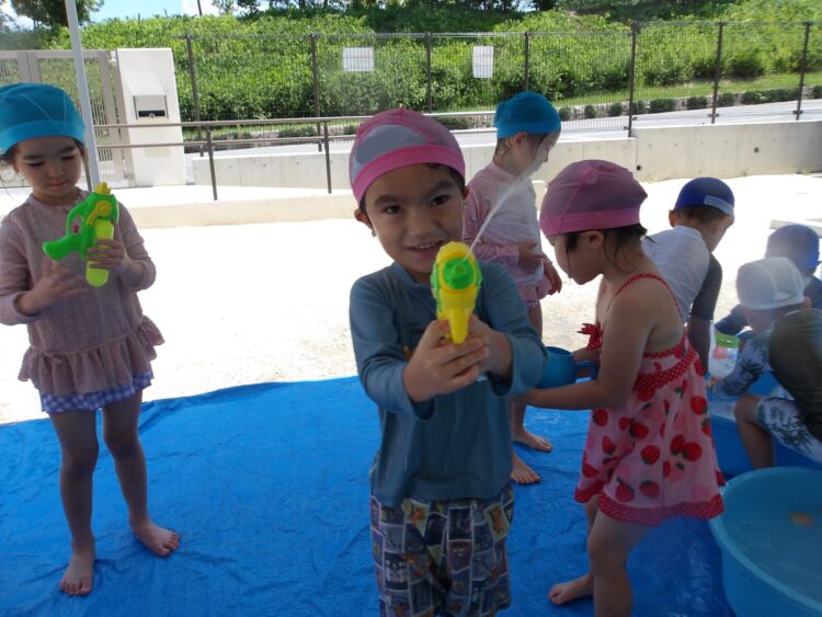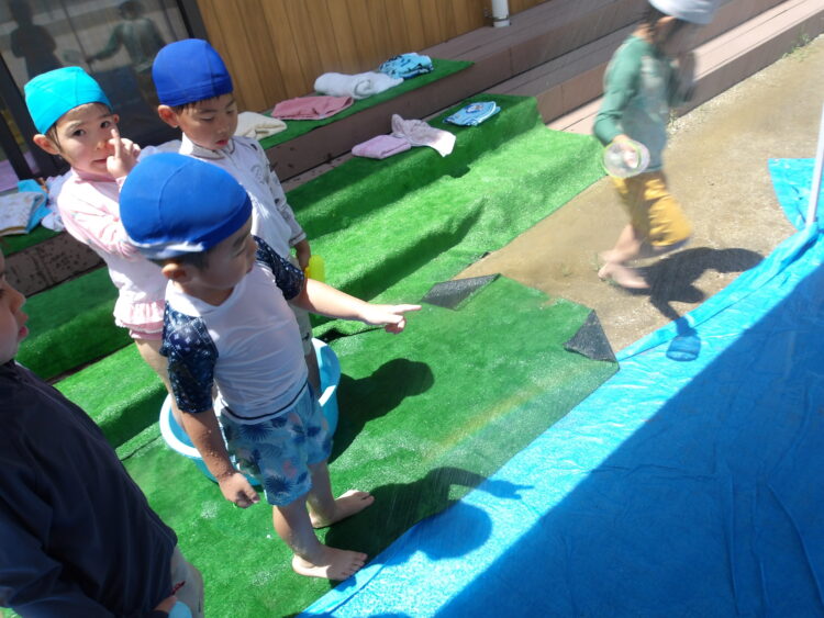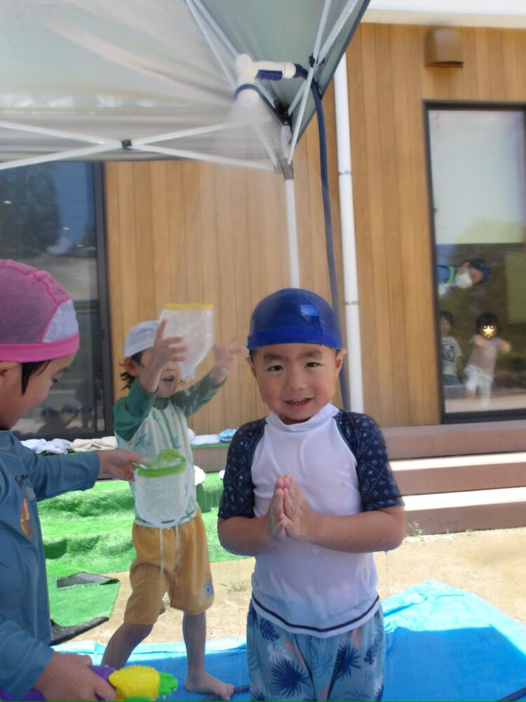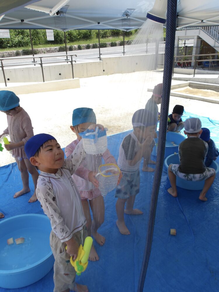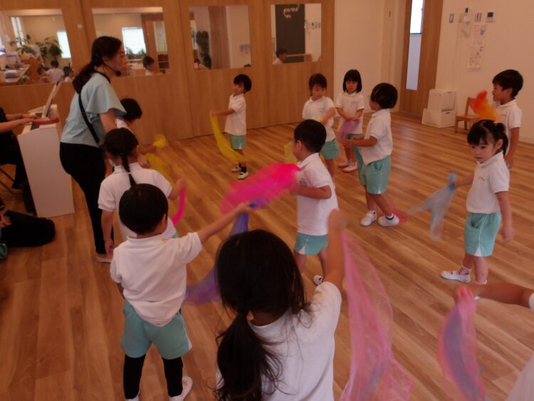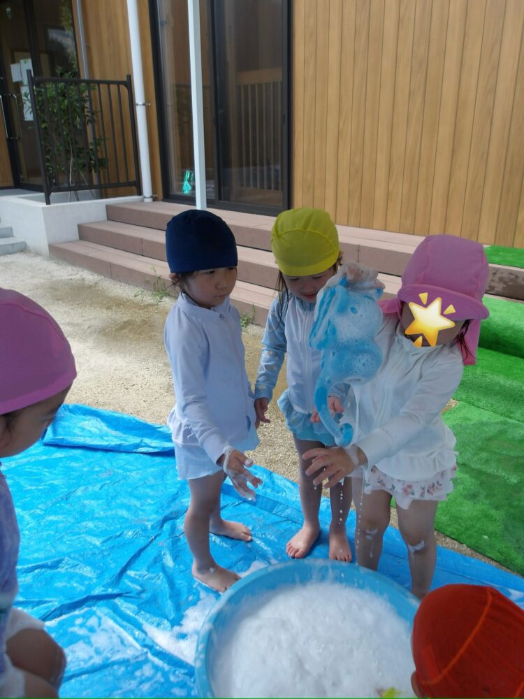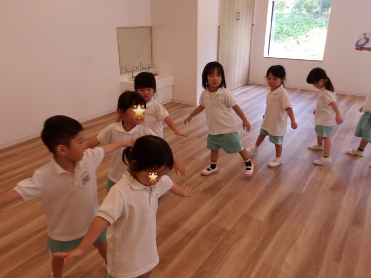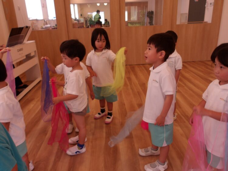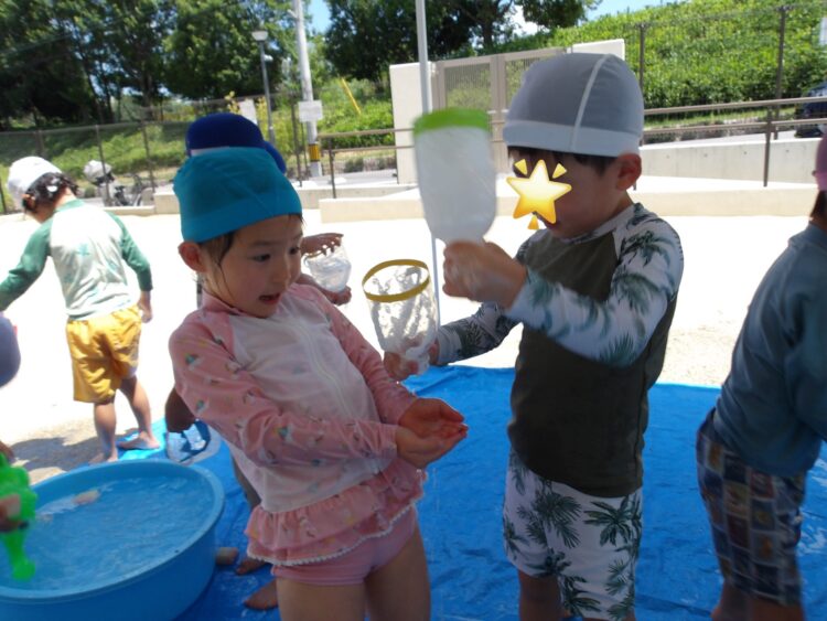 誕生日会で夏祭りの屋台をテーマにしたスケッチブックシアターを楽しんだあとだったので、〈姫りんご〉を持ちながらお花を選んでいる子どもたちの姿は、本当にお祭りに来たようでした🤭