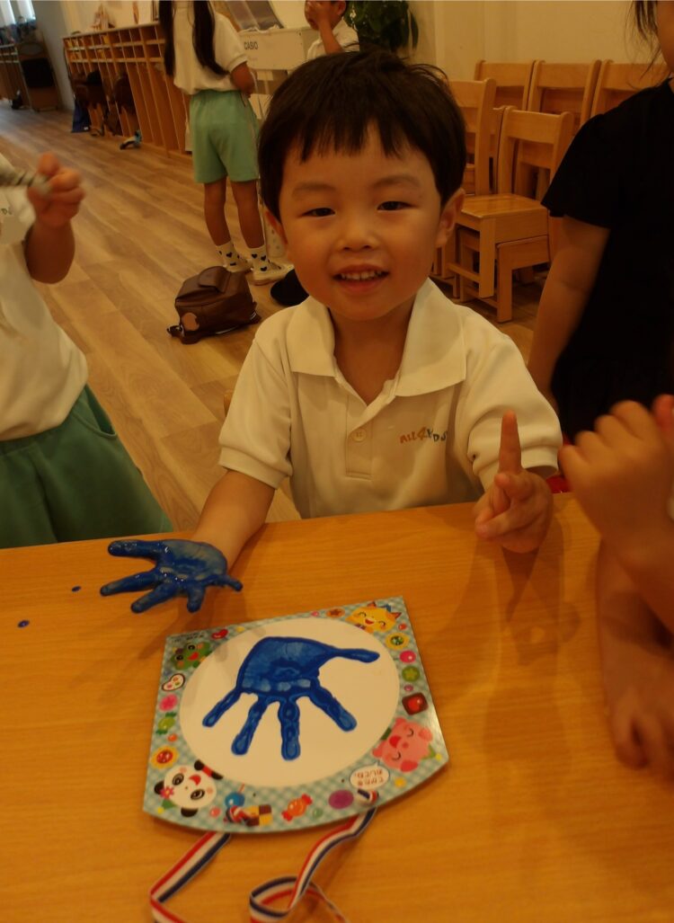 完成すると、友だち同士で互いの作品を見せ合いっこする微笑ましい姿も見られました。