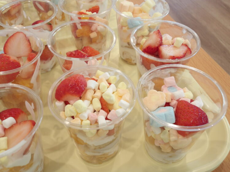 クリームは控えめに絞っていましたが、特にマシュマロを気に入った子が多く、とても華やかなパフェに仕上がっていました。