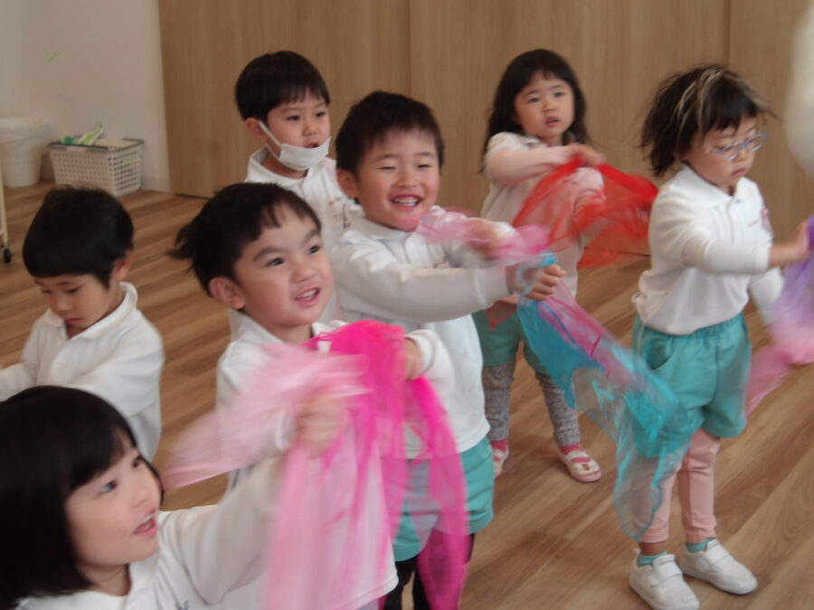 にじ・たいよう組は園庭やご家庭であそんだり、練習した成果を体操講師見てもらえて嬉しそうでした。