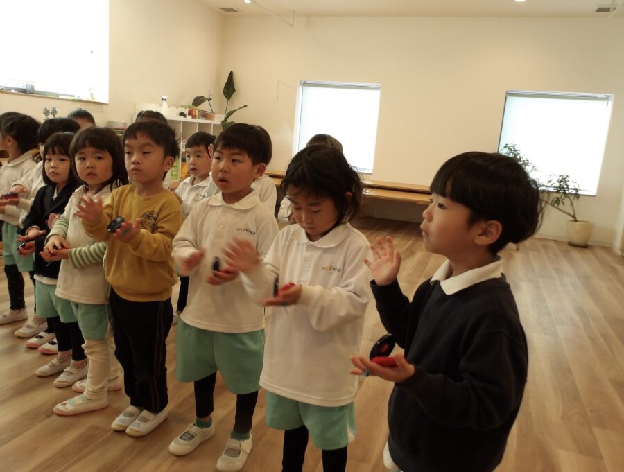 初めてやった《 Shake,Shake 》という曲はすぐに子どもたちに気に入ってもらえて、「もう一回やるー!」とノリノリの様子♩