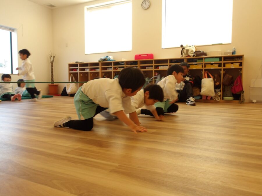 あそびの中で何気なくやっているような気がしましたが、これもうさぎ組さんにとっては少し難しい動きでした。