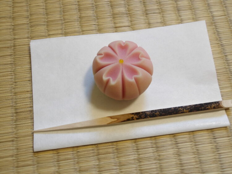 先月の茶の湯で3月は桜のお菓子を出していただけると教えてもらっていたので、お茶室飾りも桜にしました。