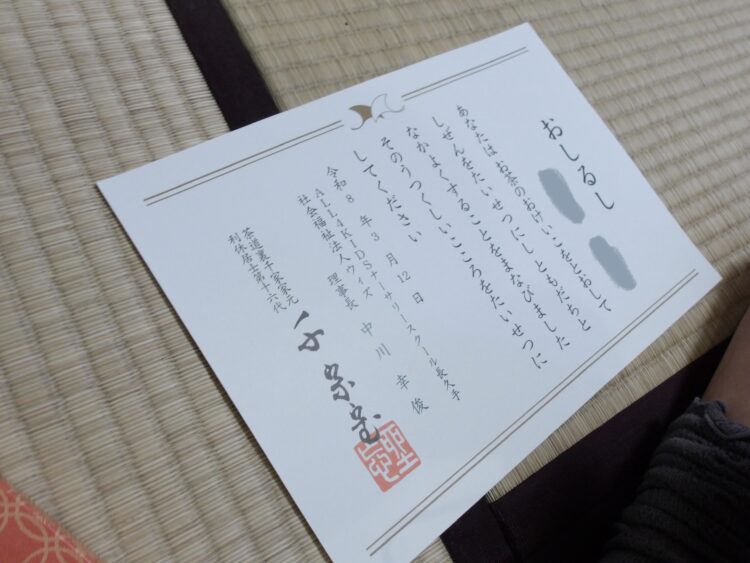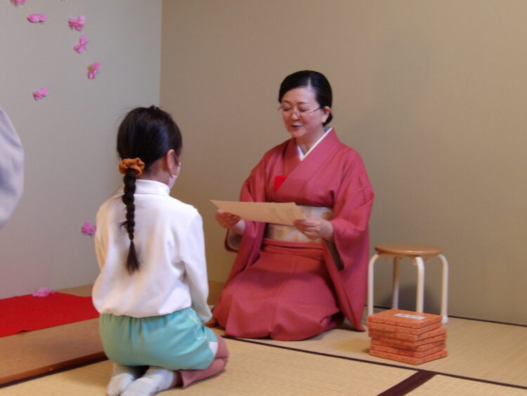 一年を通してお茶を学んできた子どもたちに講師の先生からおしるしをいただきました。
