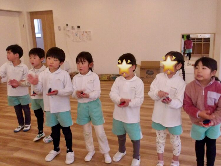いつもはお話しをして賑やかなお稽古になるのですが、今日はおうちの人に見守られていることや最後だからかっこよくやろう、と思う気持ちから緊張や集中している様子がうかがえました🤭