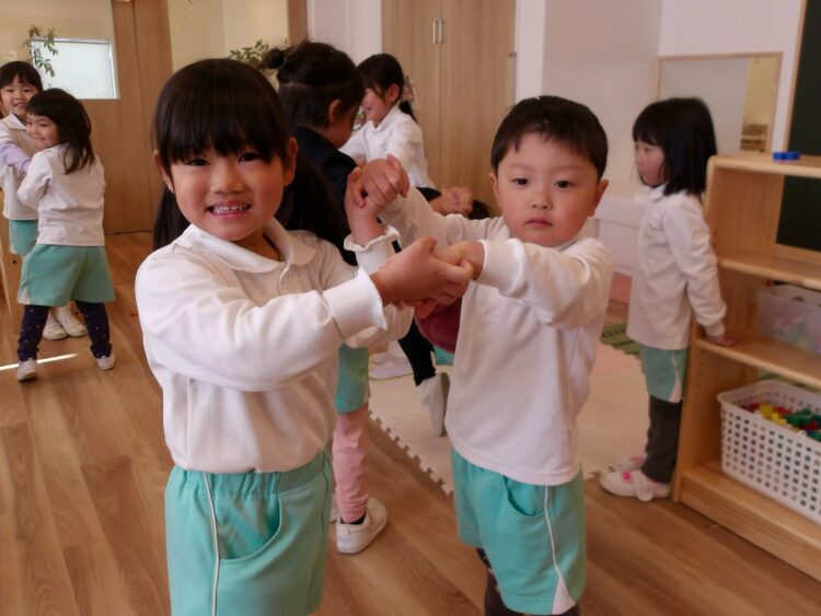 イングリッシュタイムでは《London Bridge Is Falling Down》でみんなであそびました。