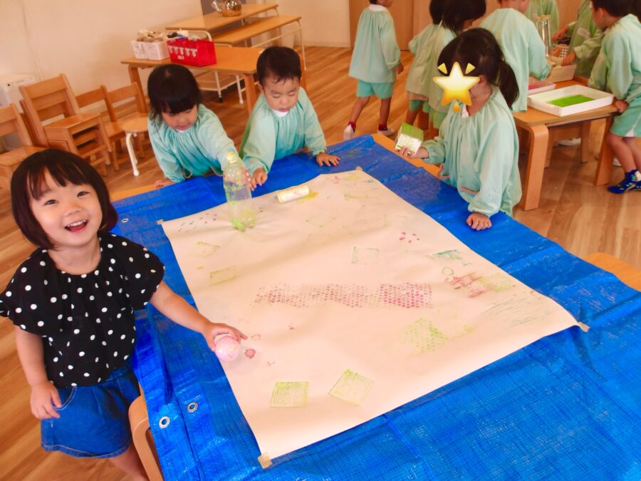 手形を押した制作のプレゼントを贈ると、「大きくなったね」「大きな手だね」と喜んでいただけました☺️