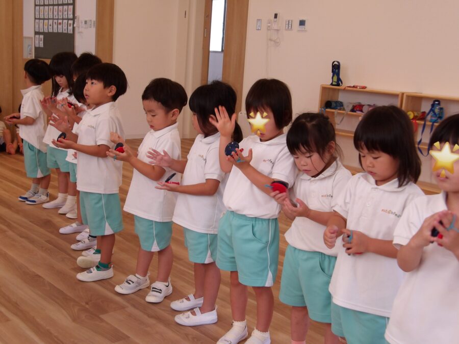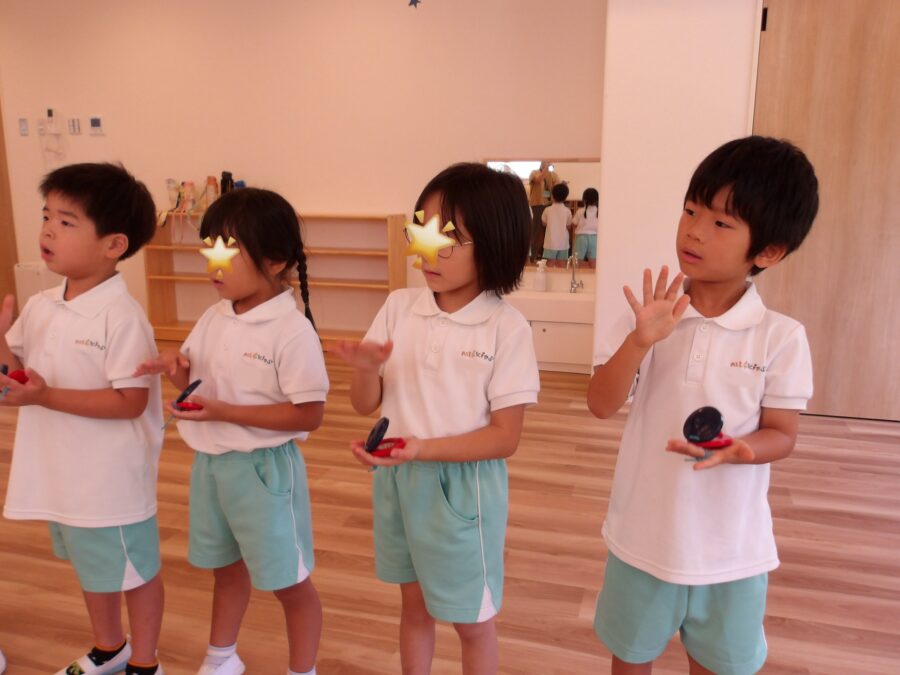 最近歌い始めたばかりの曲ですが、あそびながら思わず口ずさんでしまう位よく覚えて、今日も恥ずかしがりながらも元気に歌っていました。