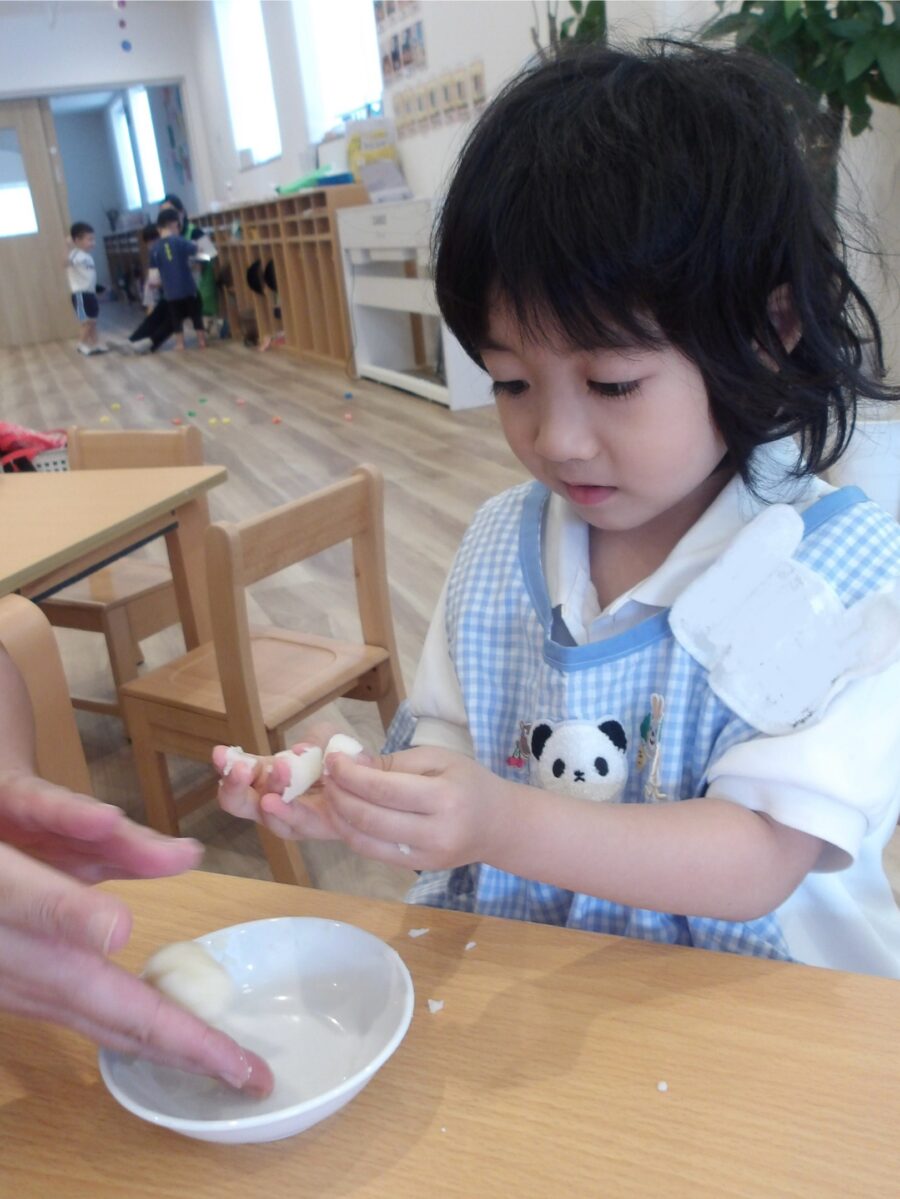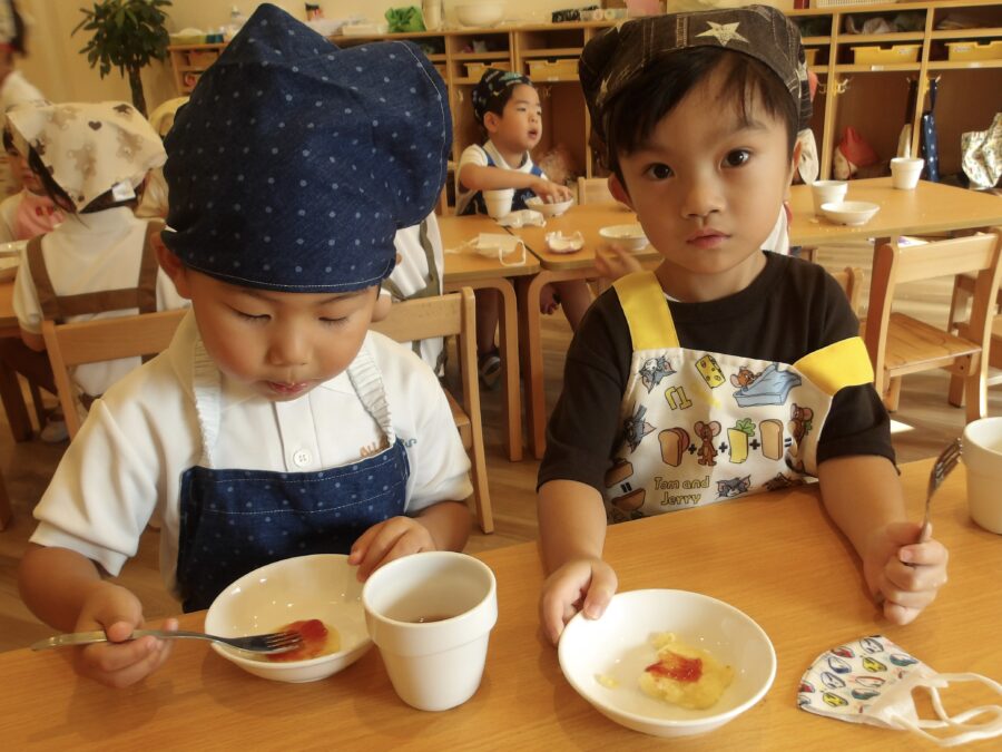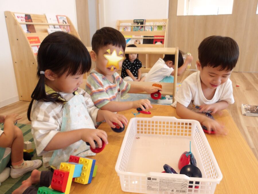「こっち来て!」手招きをしてお気に入りのおもちゃを見せてあげたり、ままごとコーナーではたくさんの料理が振る舞われたりしていました。