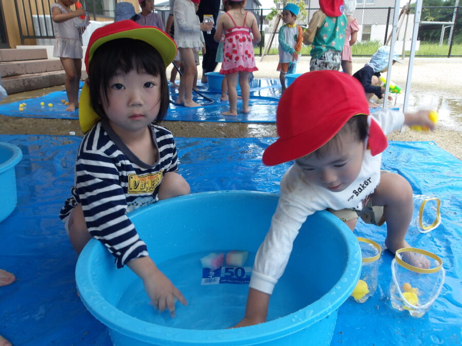 あひるやスポンジを集めてゆったりあそぶ姿もありました。