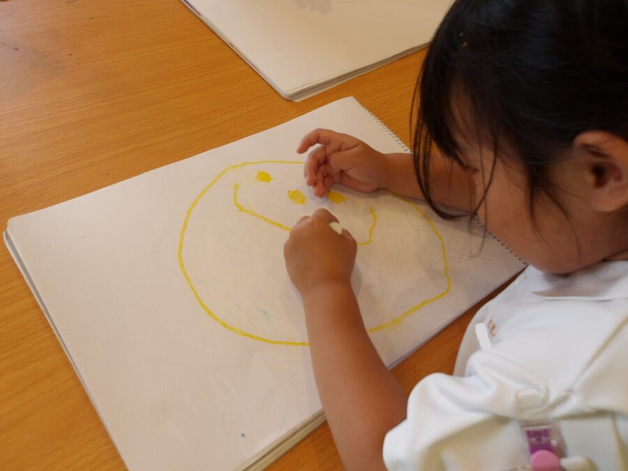 自分のお顔を書いて、保育者に嬉しそうに見せてくれたり、