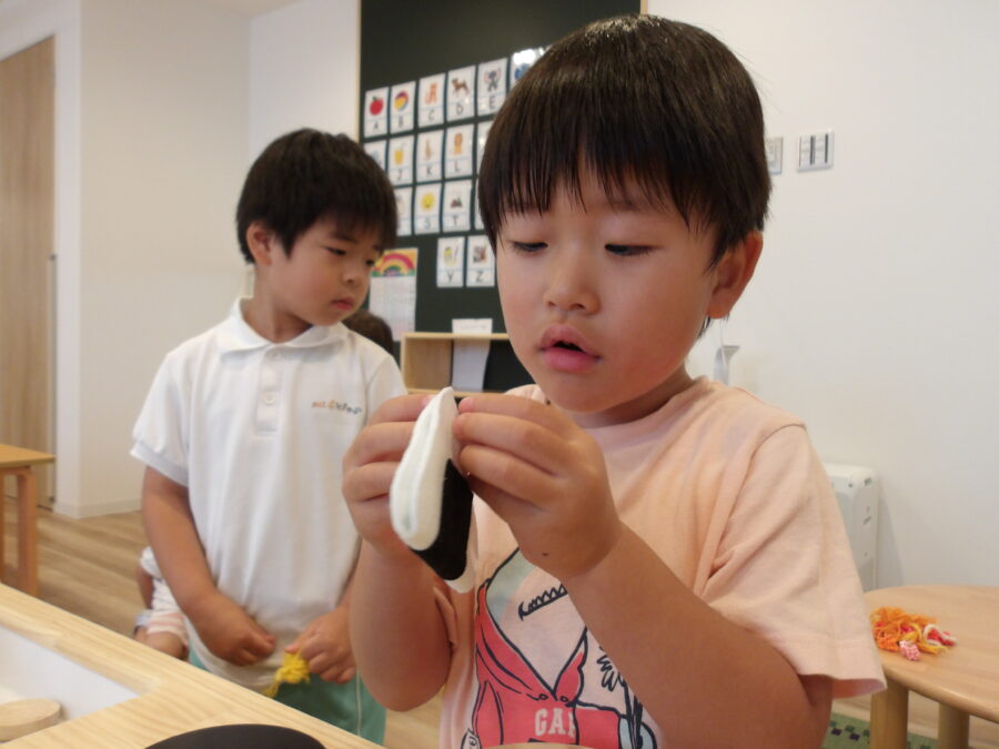 「これも使っていいよ!」と近くにいた友だちがおにぎりを持ってきてくれて思わずにっこり☺️🍙