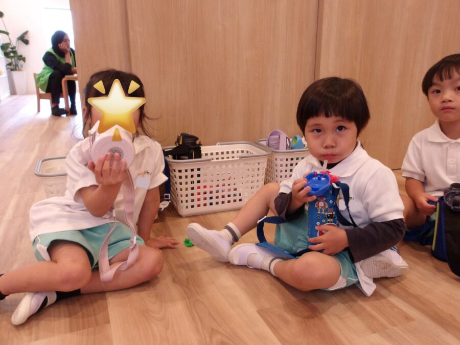 室内であそんでいても水分補給は大事だね。