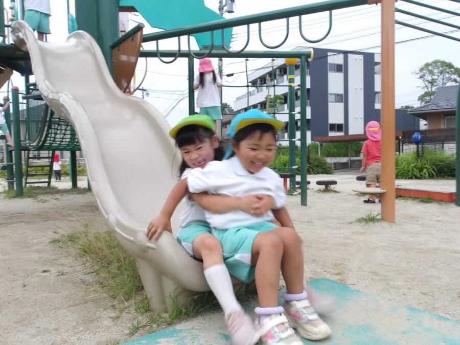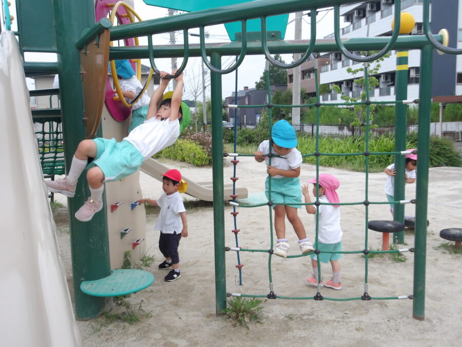 前はちょっぴり怖かった遊具も今では前向きに挑戦しています。