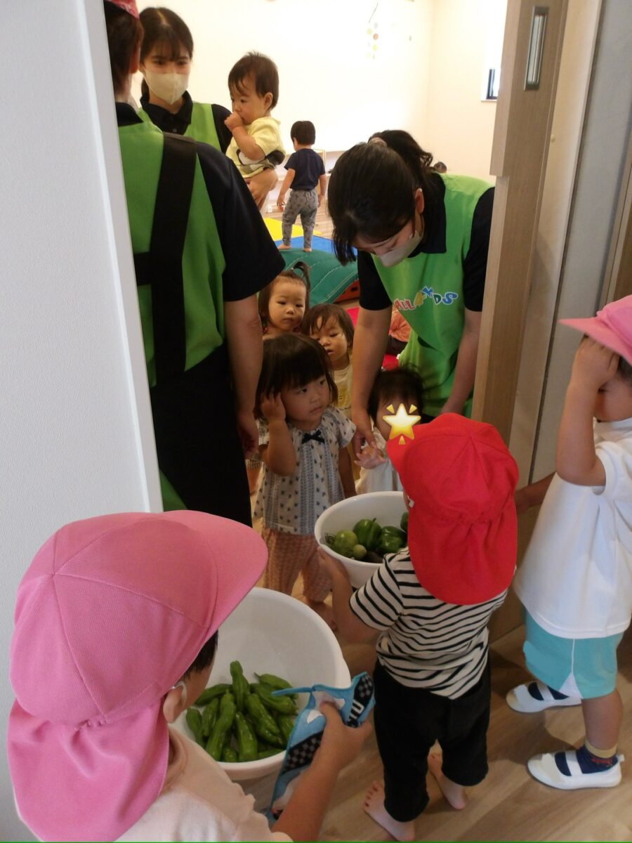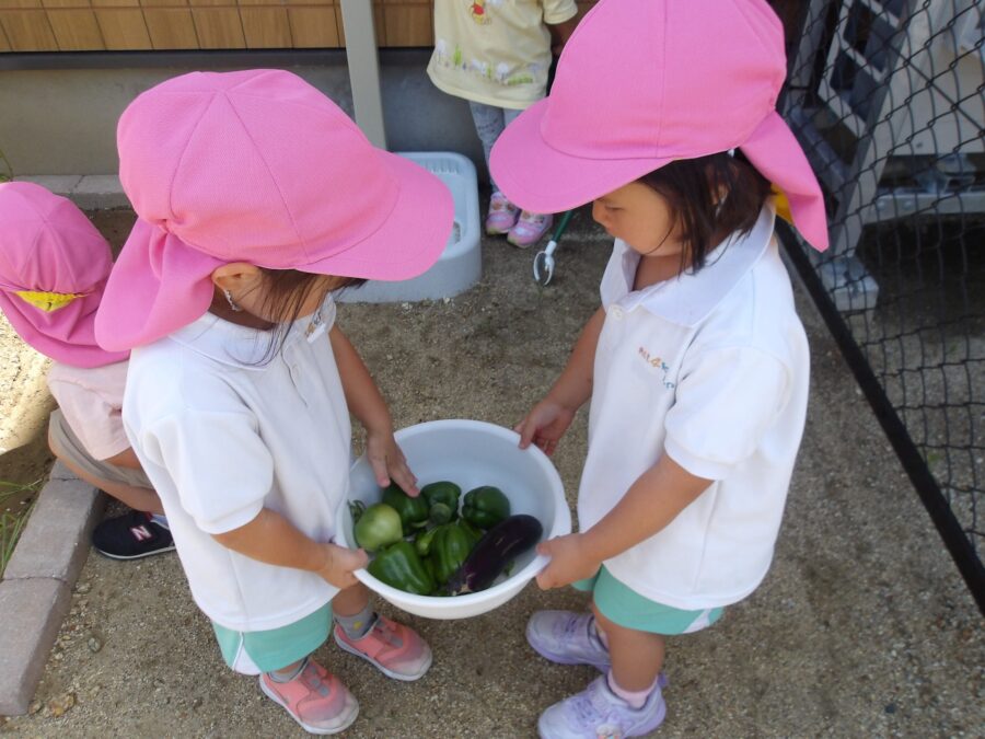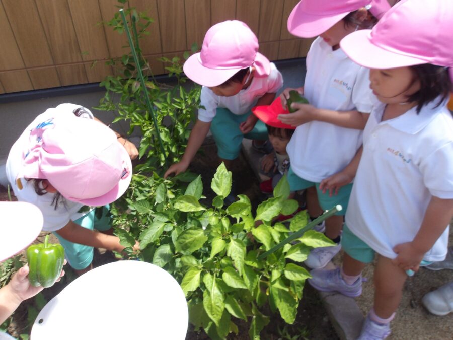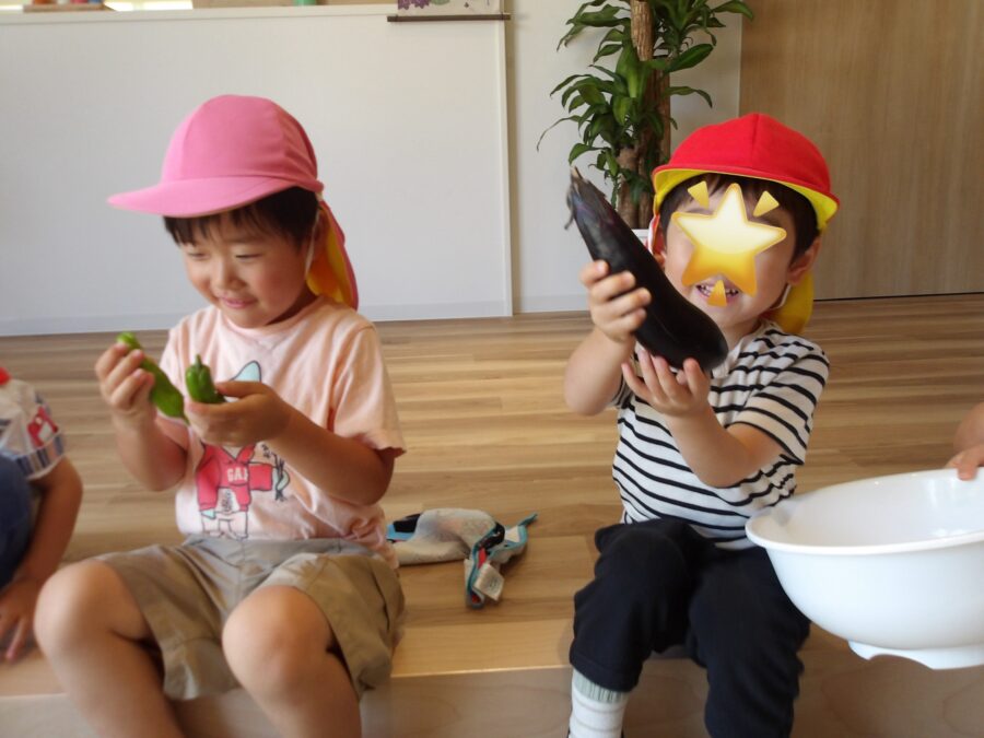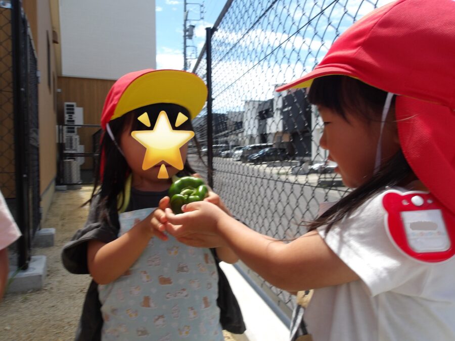 久しぶりに畑に行った子が多く、「ピーマンできてる!」「ナス大きくなってるよー!」「トマトも!」と大興奮。