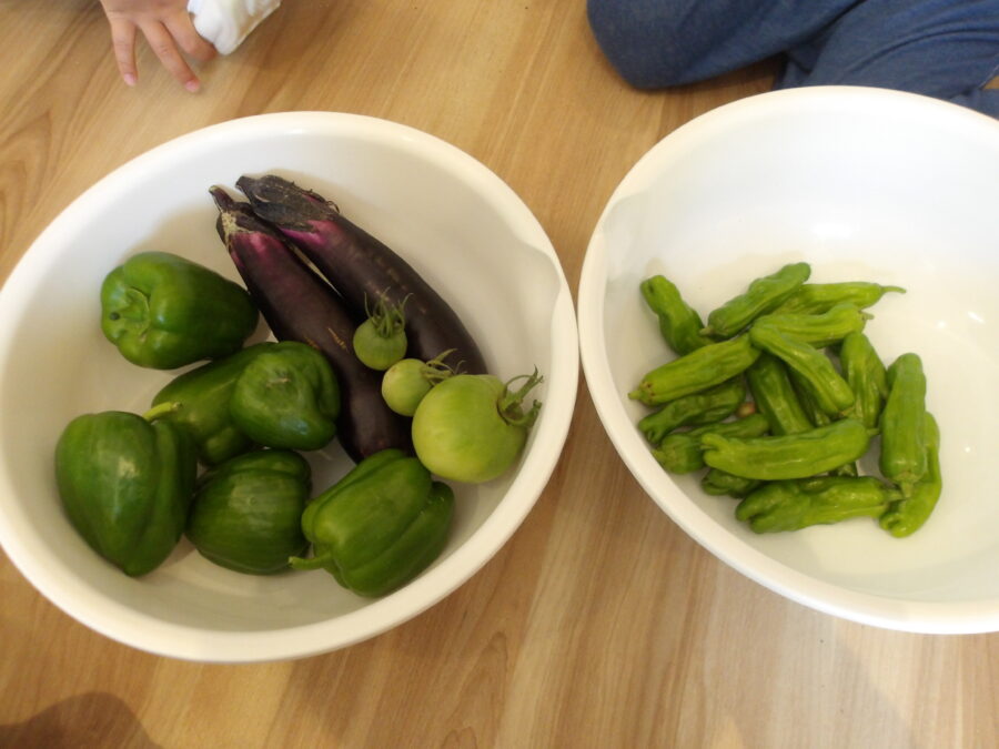 昨日採れたお野菜を明日以降もみんなでいただきたいと思います。