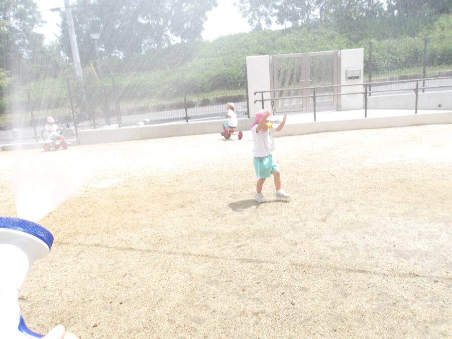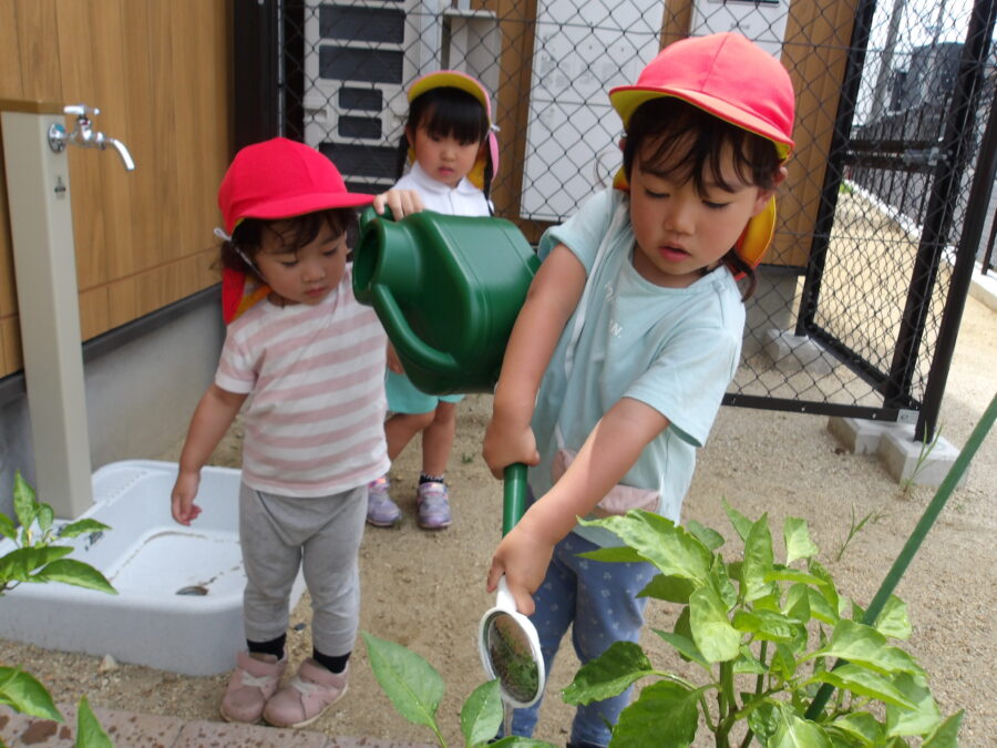 戸外あそびの際に畑の水やりもしました。