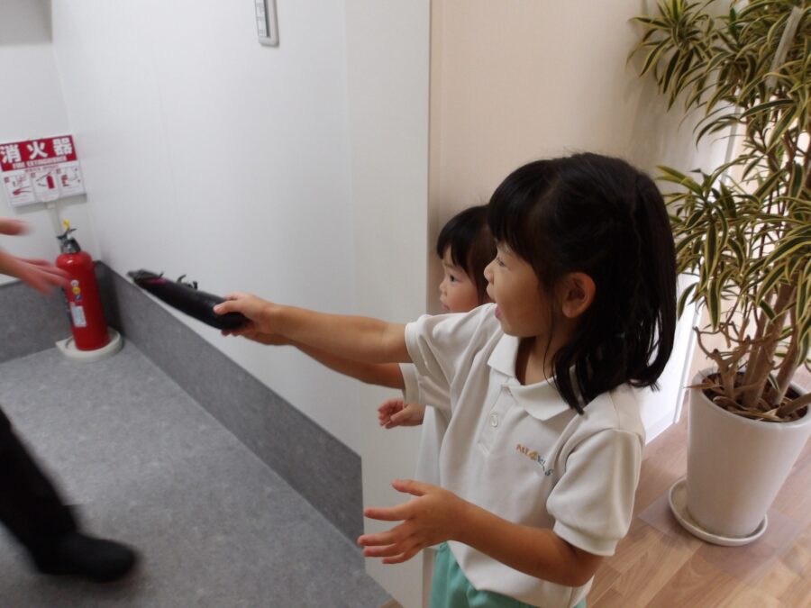 今日は月に一度の防災避難訓練。