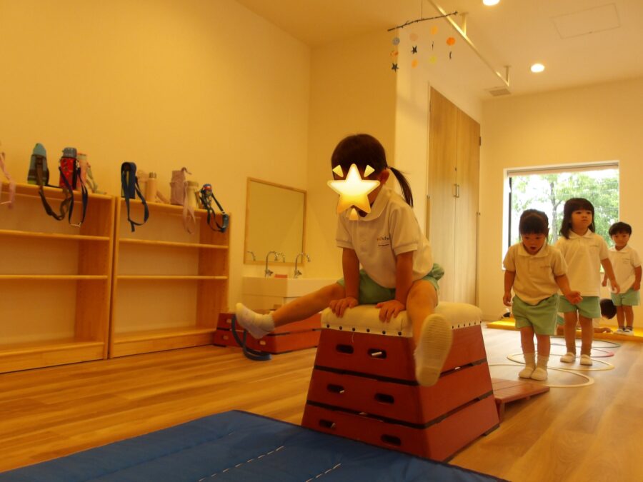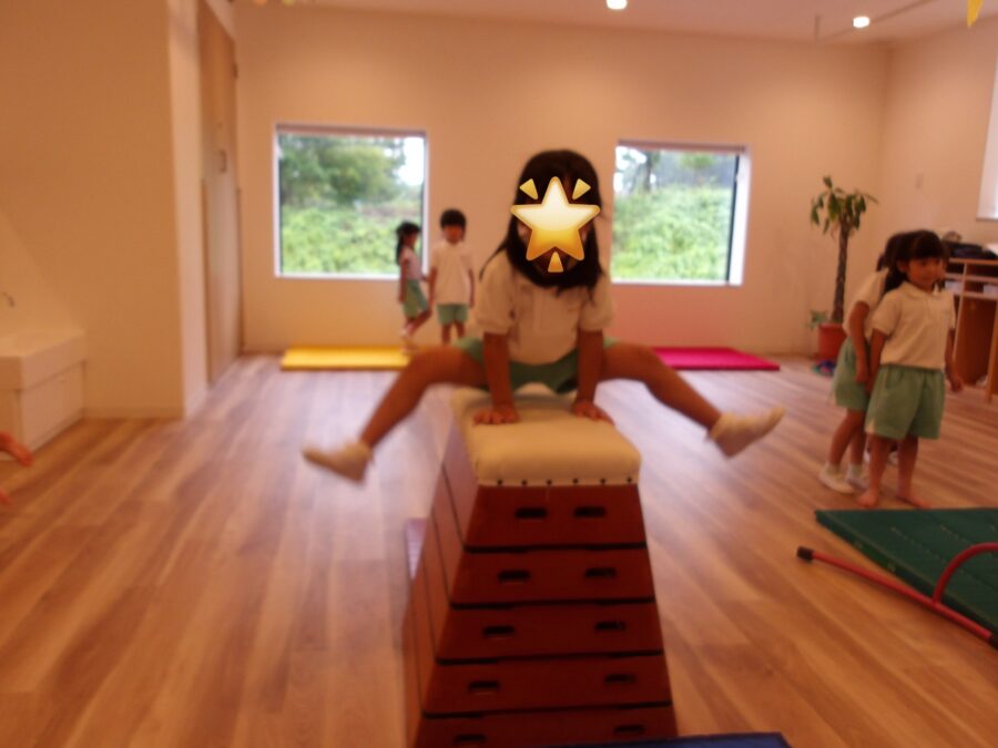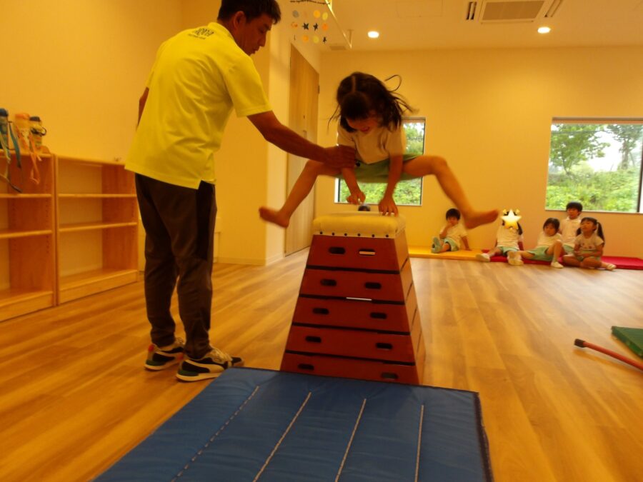 年中、年長さんはなんと5段の跳び箱に挑戦です!