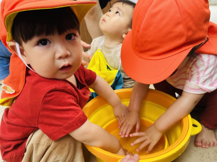 こっちでは、桶にお水をためて、お手手でチャプチャプ🖐️