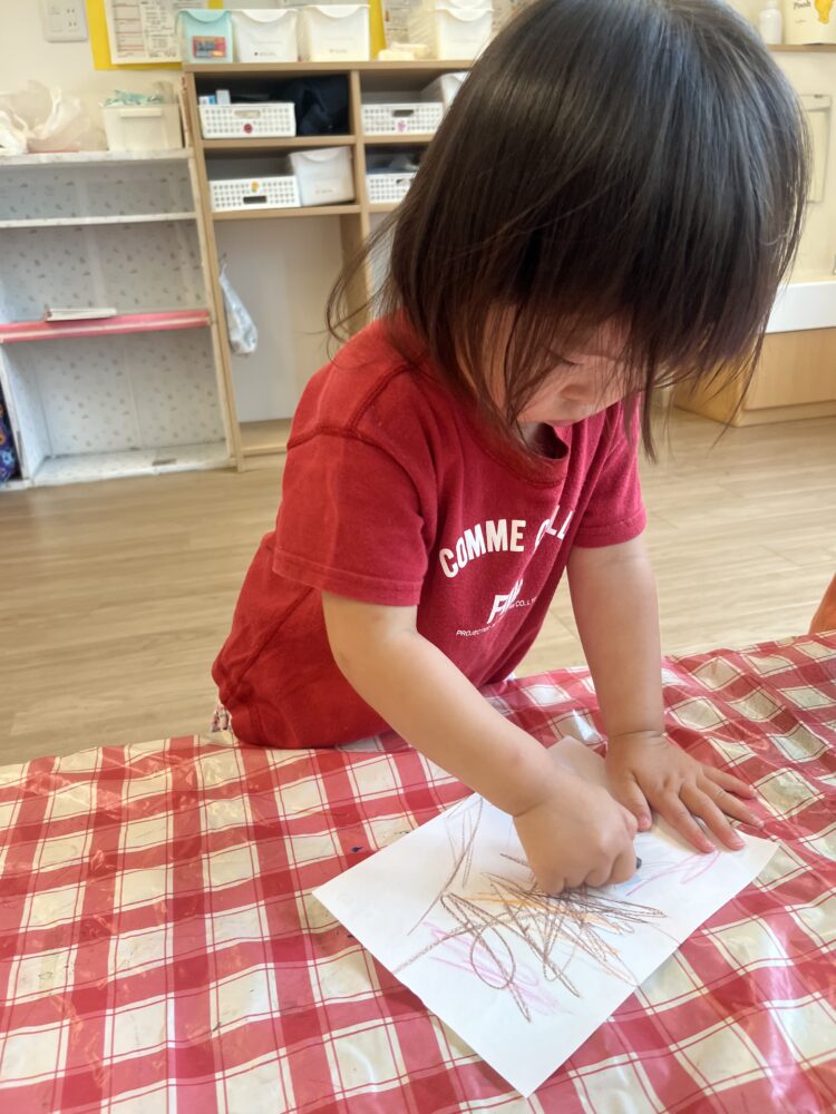 ぺったんし終わった後は、大きい子だけでお絵描きです🖍️