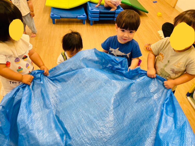 ビニールシートで海を作ったりとビニールシートを楽しみました🌊