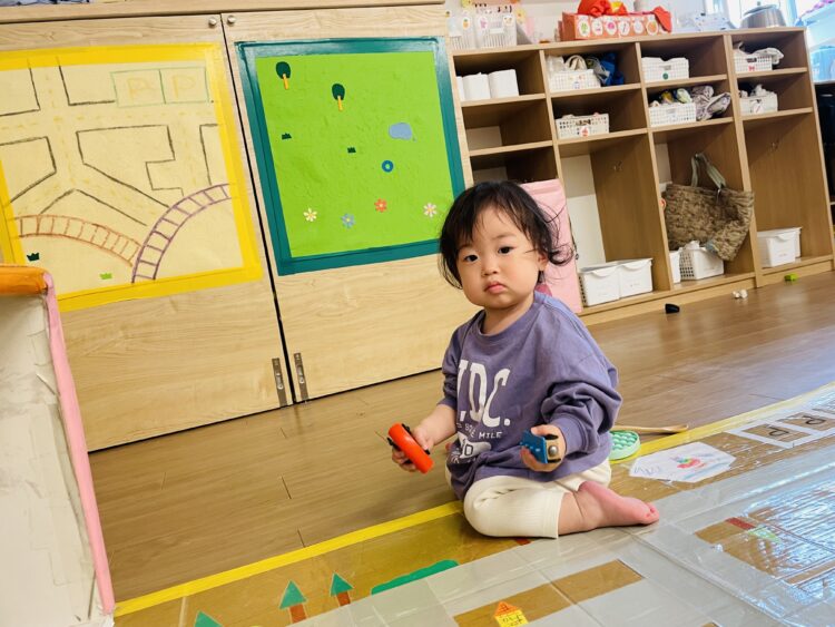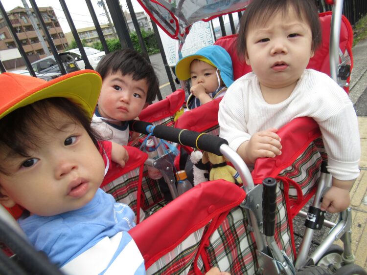 ぞう組さんは、ひよこ組さんやうさぎ組さんの姿を見ると