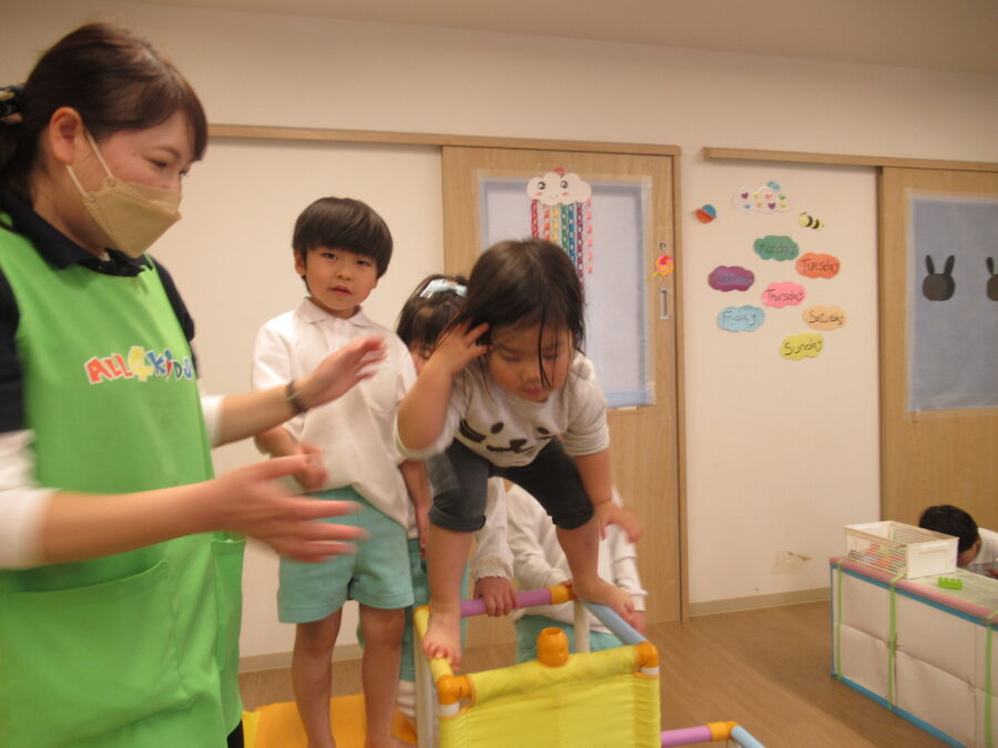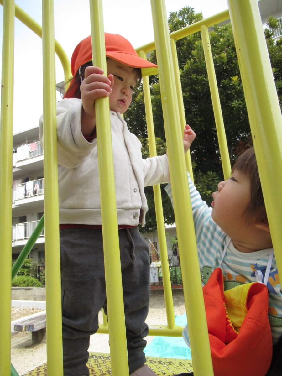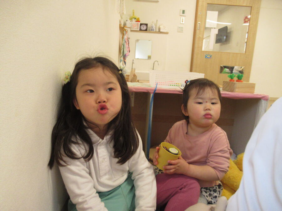 ひよこ組さんは、ちょっとした触れ合い遊びをします