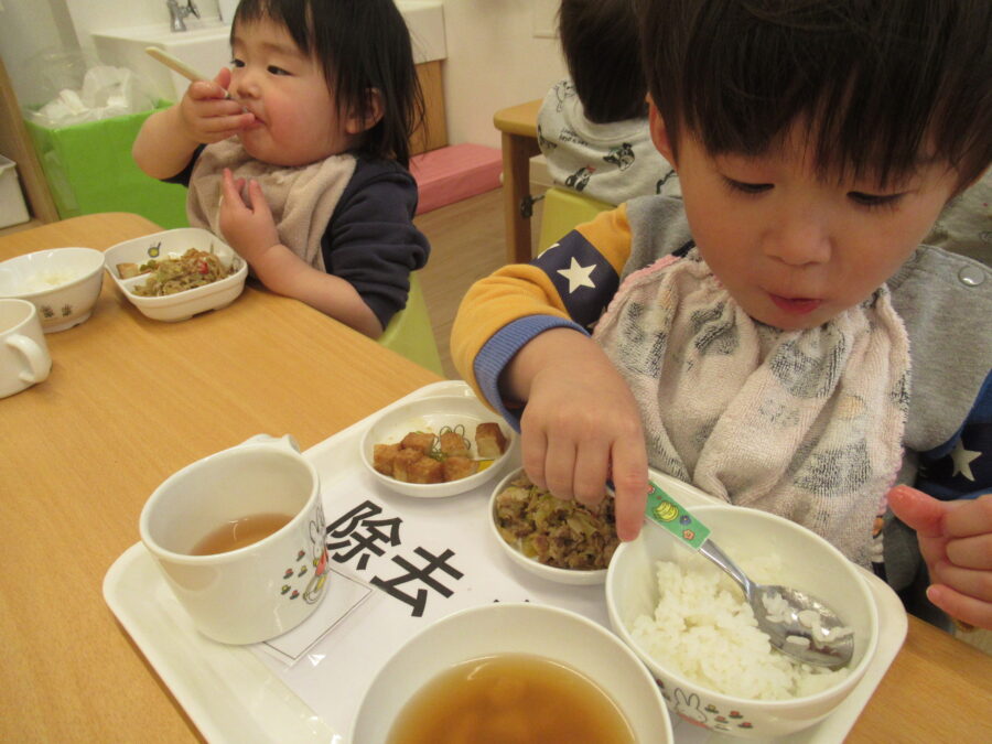 遊んだ後は給食🍚