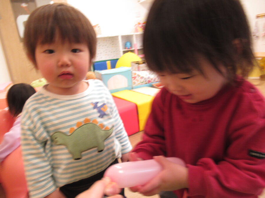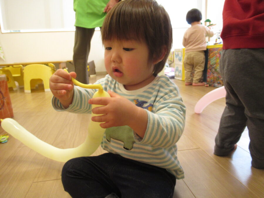 不思議な形の風船に興味津々
