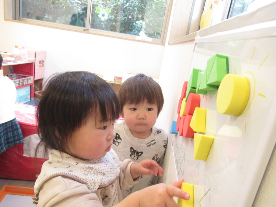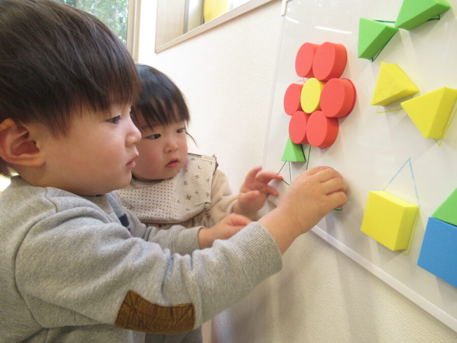 新しいおもちゃに興味津々の子どもたち