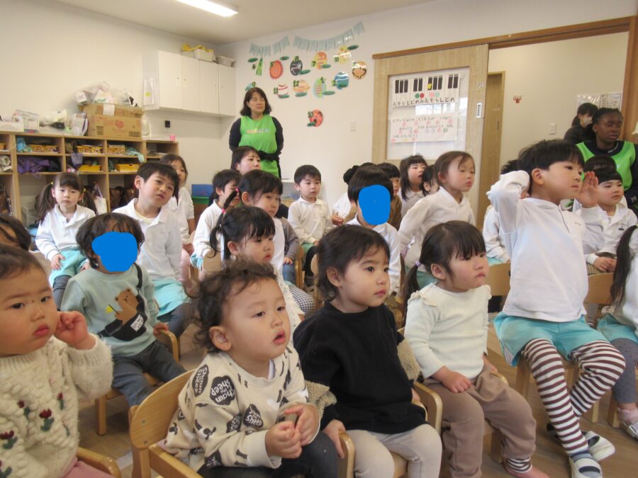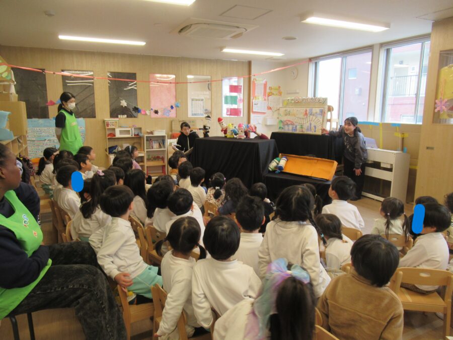 面白い人形劇に「わーー!」と声をあげながら楽しんでいましたよ![]()