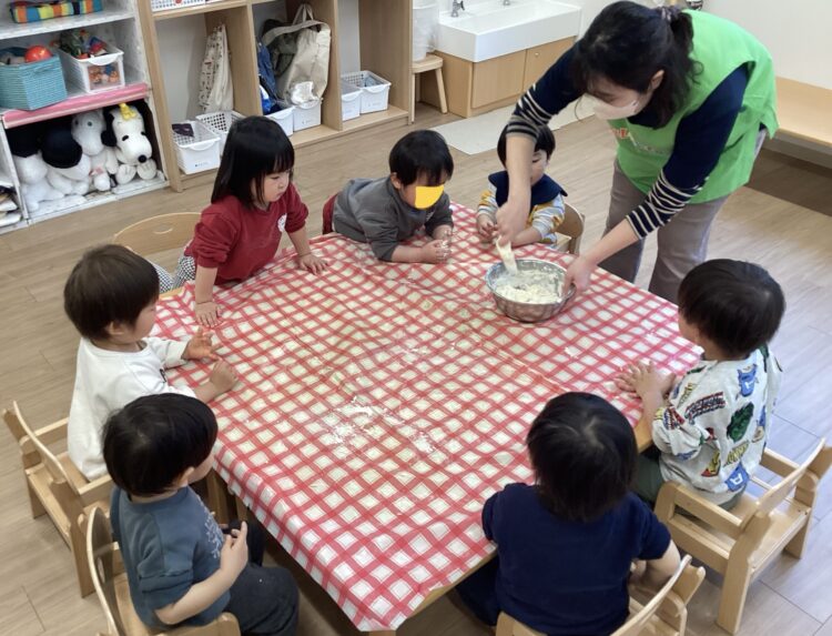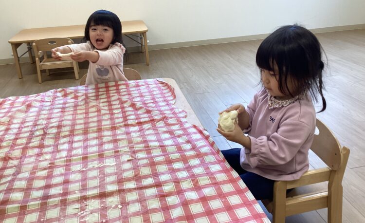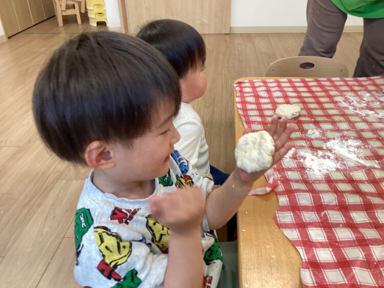 小麦粉に水を混ぜていくと、次第に粘土になっていきます。