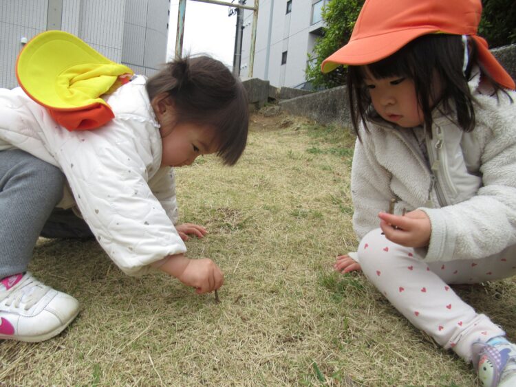お砂場遊びに熱中!楽しくって、楽しくって….