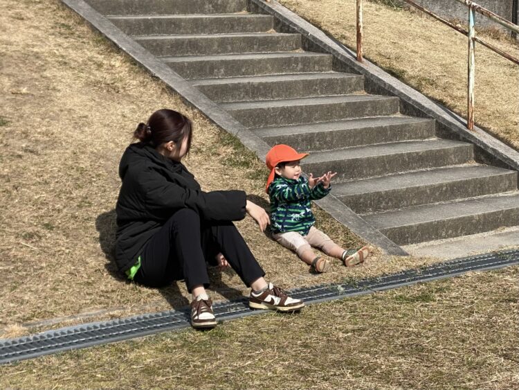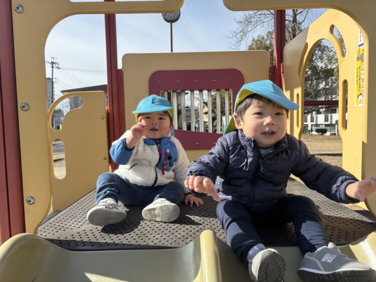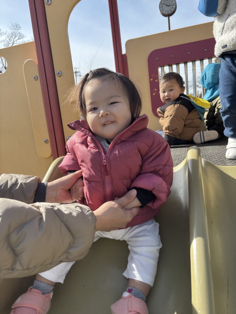 公園に到着すると、まずは大好きな滑り台🛝へ✨