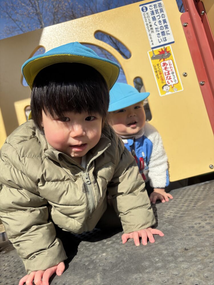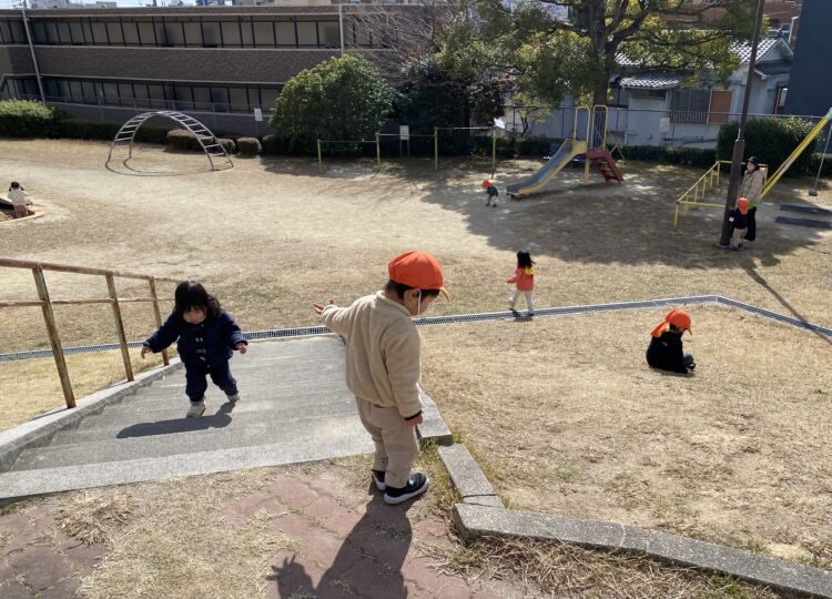 上手に階段を登り滑る子や保育者と一緒に滑る子など、一人一人が楽しんで遊ぶ事ができました。